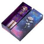 Jede Rose ist mit einer irisierenden, holografischen Beschichtung versehen, die im Licht wunderschön schimmert und ein galaxienähnliches Funkeln erzeugt, das einfach faszinierend ist.