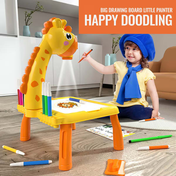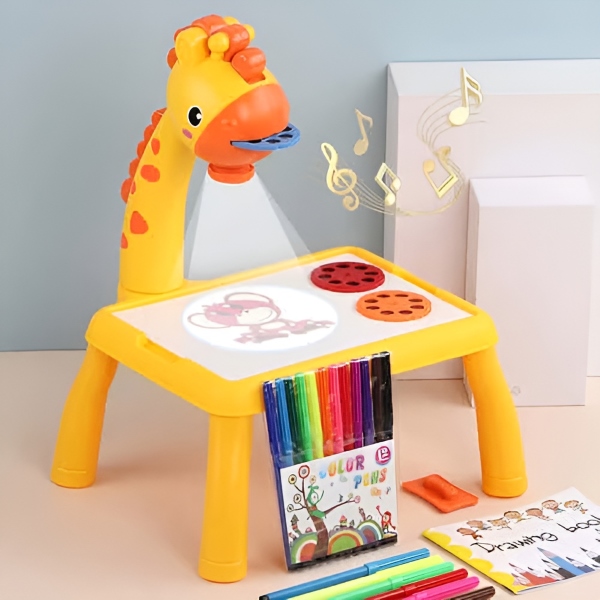 Ein farbenfroher Projektor mit Giraffenmotiv, der auffällig und unterhaltsam für Kinder gestaltet ist und die motorische sowie kognitive Entwicklung fördert.