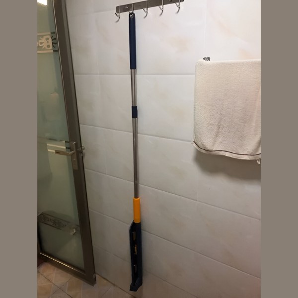 Das kompakte Design des Mopps ermöglicht eine vertikale Aufhängung, wenn er nicht in Gebrauch ist, und spart so wertvollen Stauraum. Hängen Sie ihn an die Wand Ihres Badezimmers oder Ihrer Waschküche, damit er nicht im Weg ist, aber immer einsatzbereit bleibt.